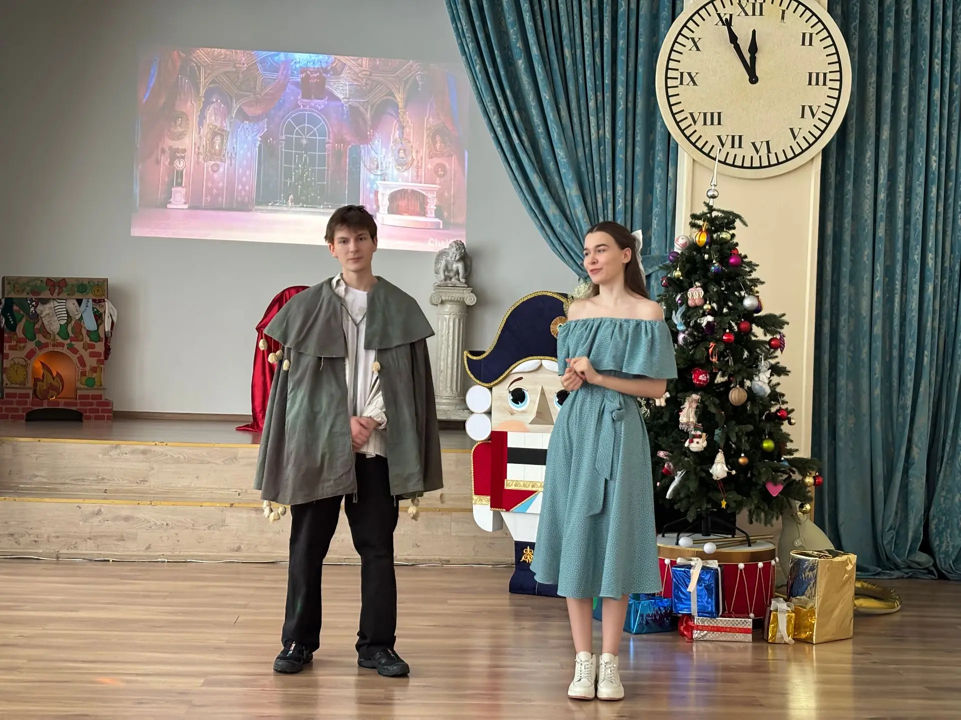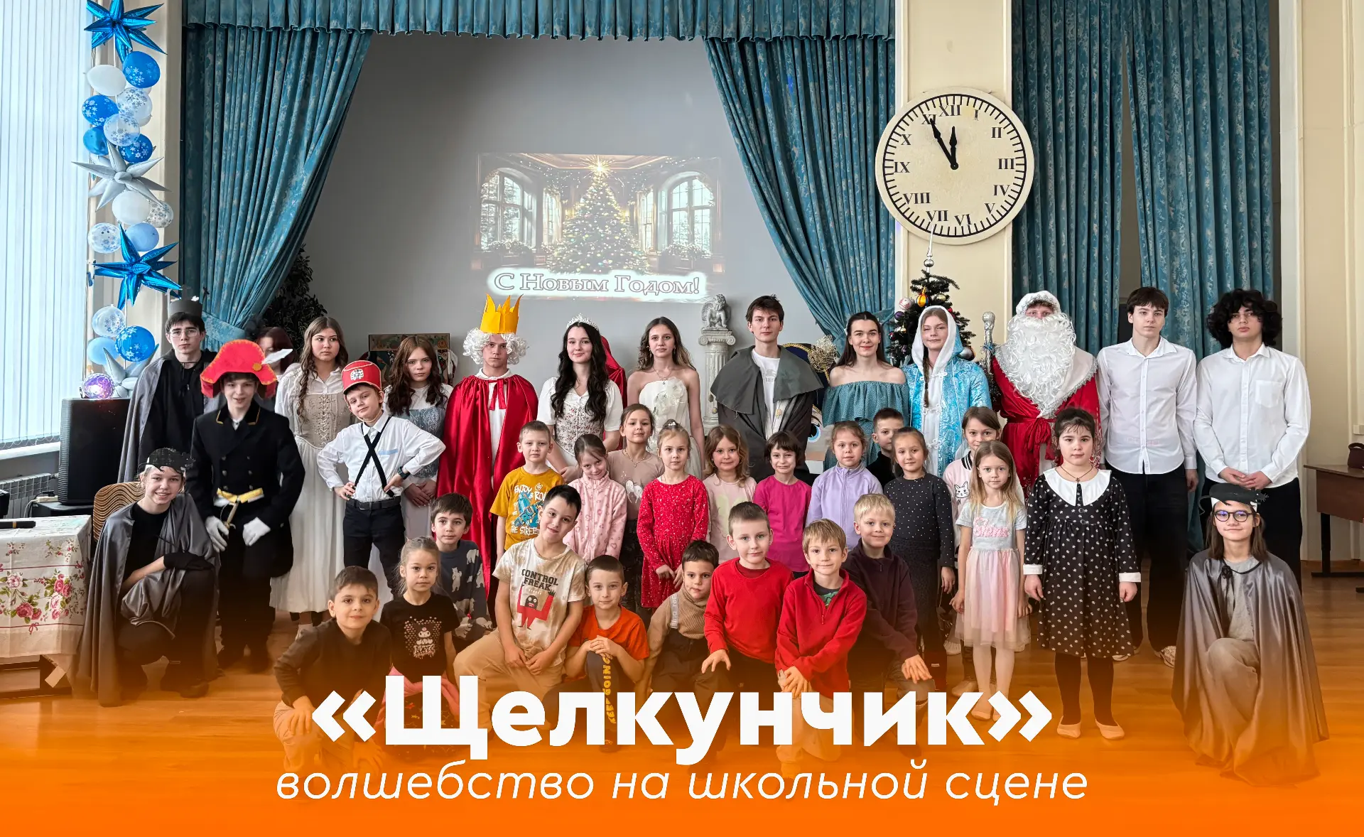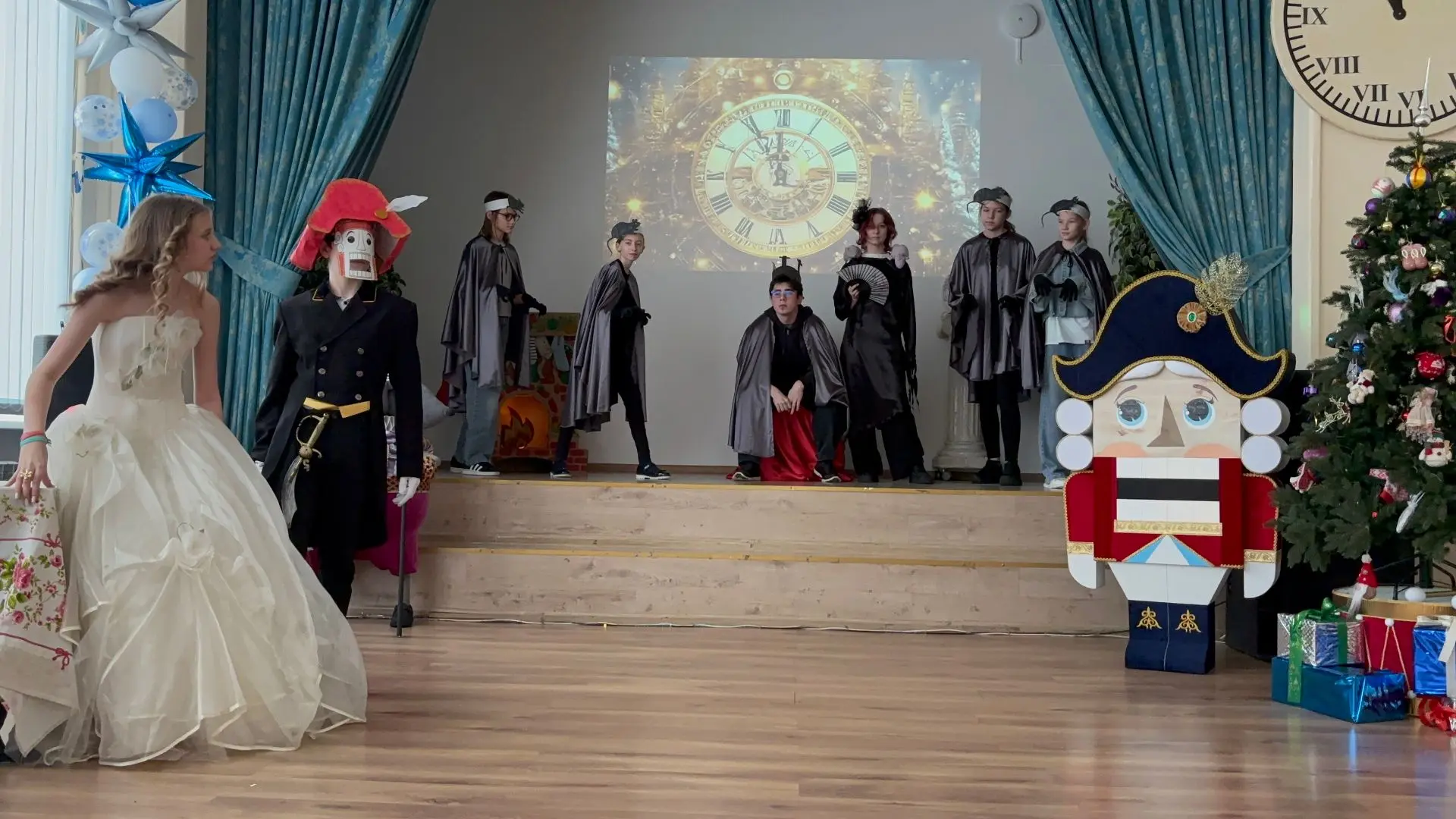 Корпус на Нижегородской, 3Б превратился в сказочное королевство. Артисты школьного кружка «Большой театр» представили свою постановку главной зимней сказки — «Щелкунчик».
